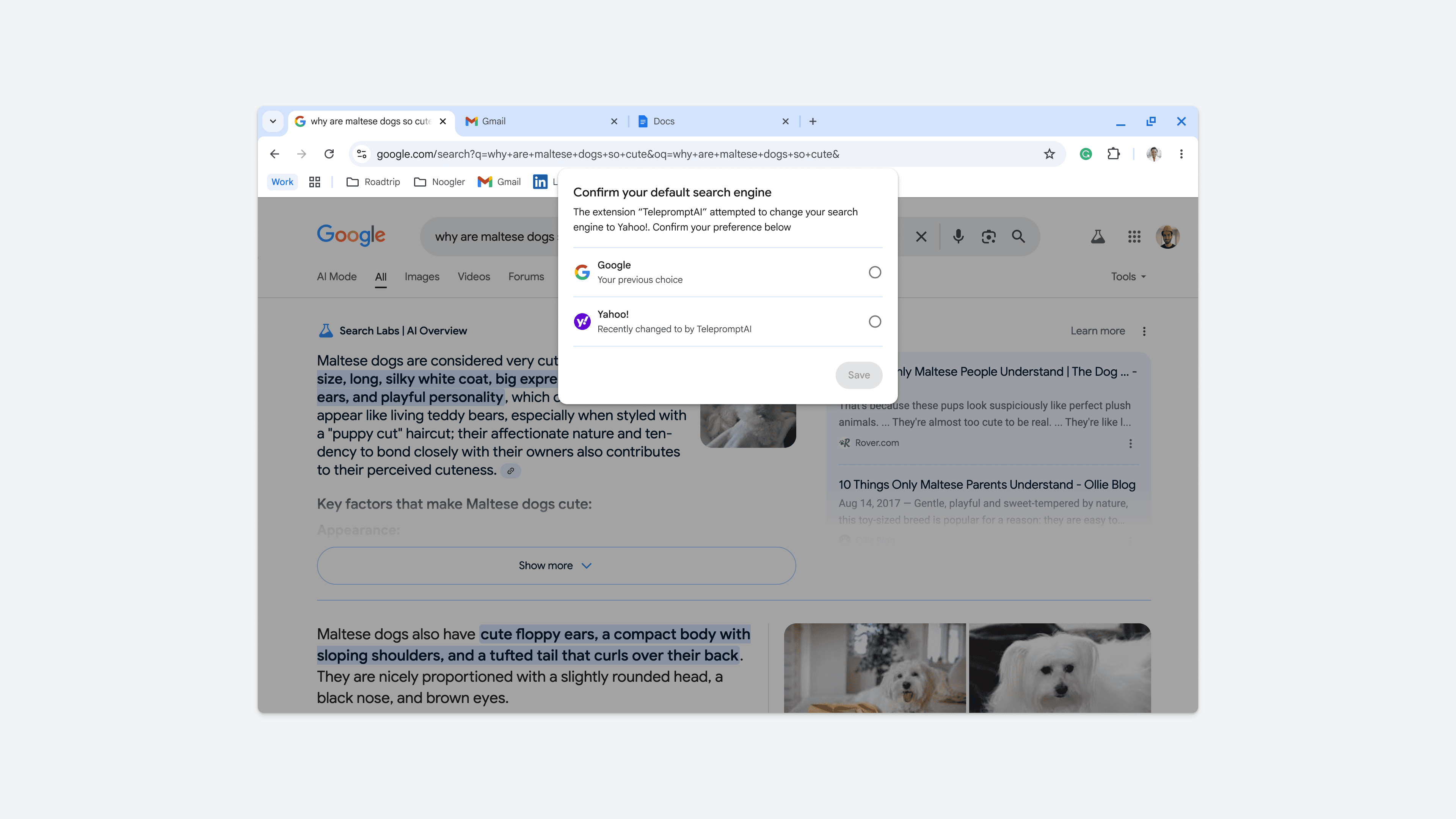 Helping Chrome desktop users gain clearer control over their search settings and preventing unwanted "search hijacking" by improving the extension confirmation dialog.